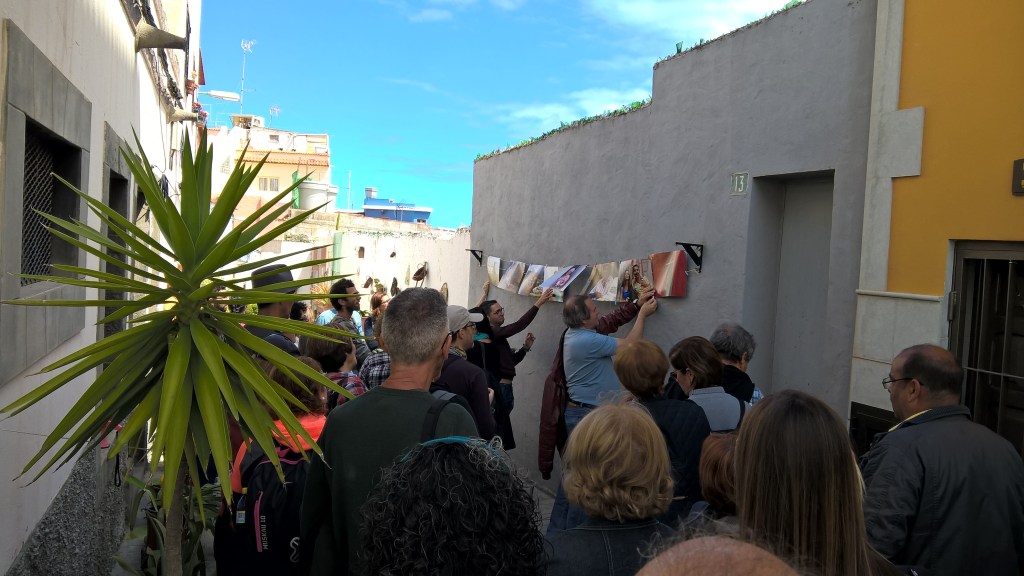 Volvimos al colgar algunas de nuestras fotos del proyecto Un Paseo por San Nicolás y así nuestros queridos vecinos volvieron a engalanar las calles del barrio. Disfrutamos de una mañana estupenda recorriendo las callejuelas y descubriendo más de los recovecos del barrio y de sus historias gracias a la hospitalidad de los vecinos y vecinas y a los comentarios de Francis Cabrera (animador sociocultural de Cultura Canaria de la Universidad Popular Juan Rodríguez Doreste) y de Tana Suárez (Asociación AmiRisco) a pie de calle.